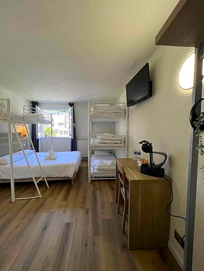 Featuring free toiletries, this family room includes a private bathroom with a bath and a hairdryer. The family room features a tea and coffee maker, a wardrobe, parquet floors, a flat-screen TV, as well as a quiet street view. The unit has 4 beds.